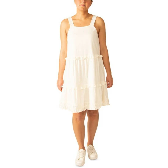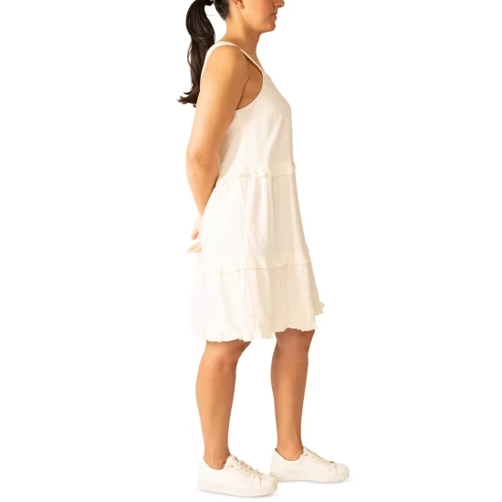 Tiered ruffles lend endless beauty to this petite shift dress from Black Tape, a sleeveless pick complete with a square neckline.