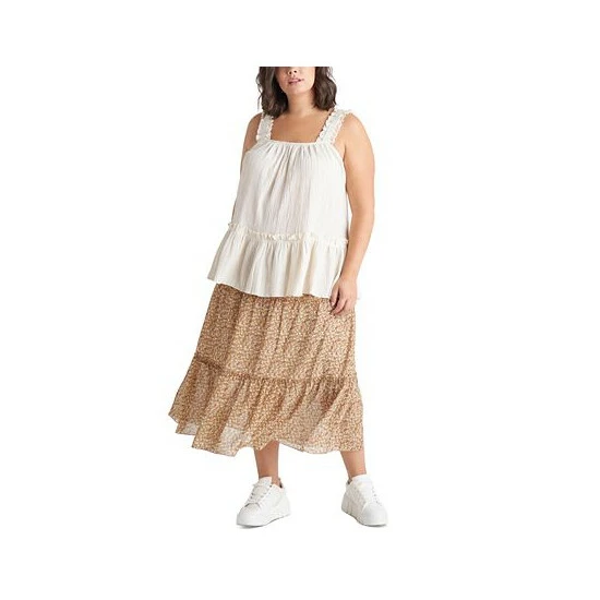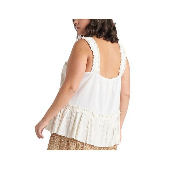 When the heat is on, go for Black Tape’s sun-loving plus-size cami top with a ruffle-trimmed peplum hem and breezy texturing.