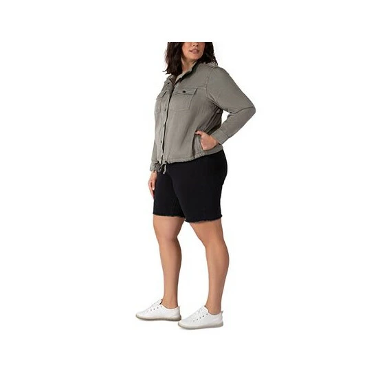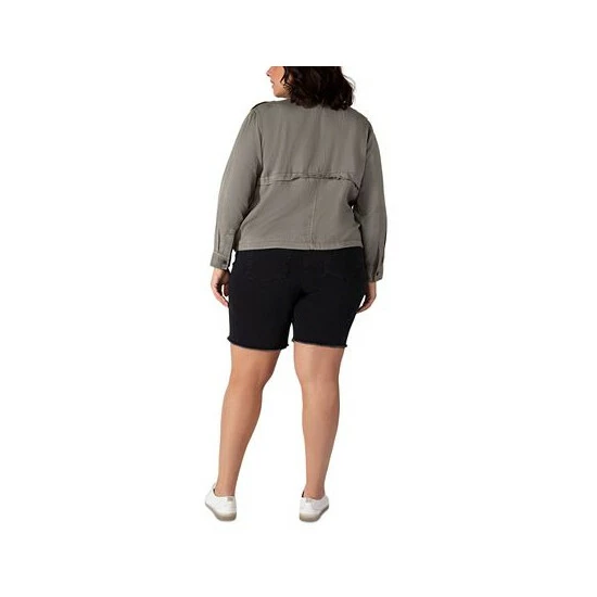 A sporty look gets a chic update in Black Tape’s plus size anorak jacket that features Tencel® fabric with epaulettes at shoulders and a toggle drawstring at the waist.