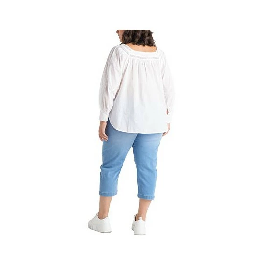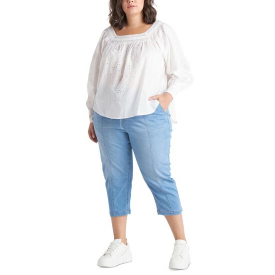 Embroidery and a square neckline set this plus size cotton peasant top from Black Tape apart.