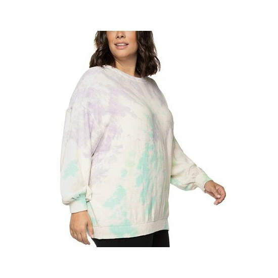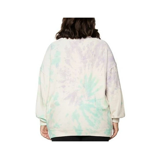 Cloudburst tie dye adds a touch of trendy style to Black Tape’s plus size relaxed sweatshirt.