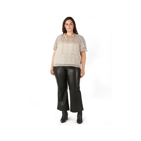 Flutter sleeves and a self-tie neckline soften the look of Black Tape’s plus size blouse.