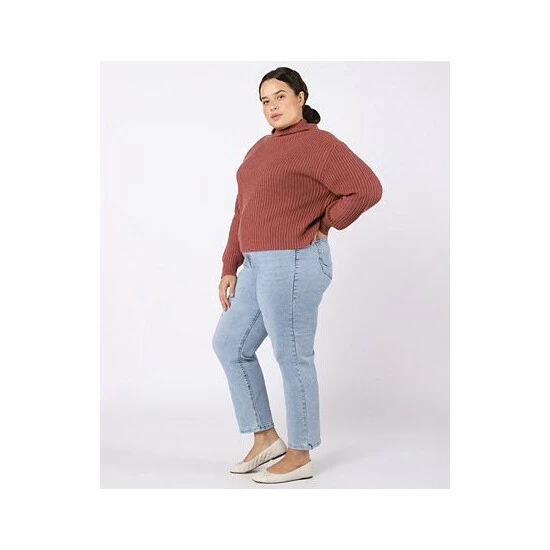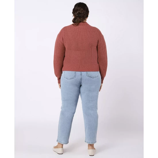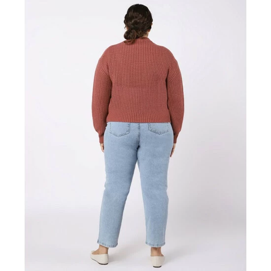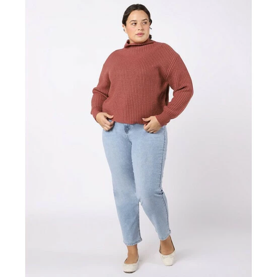 Layer in style with Black Tape’s plus size mock neck sweater. This one’s got a wider stockinette stitch for added texture.