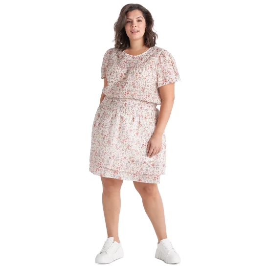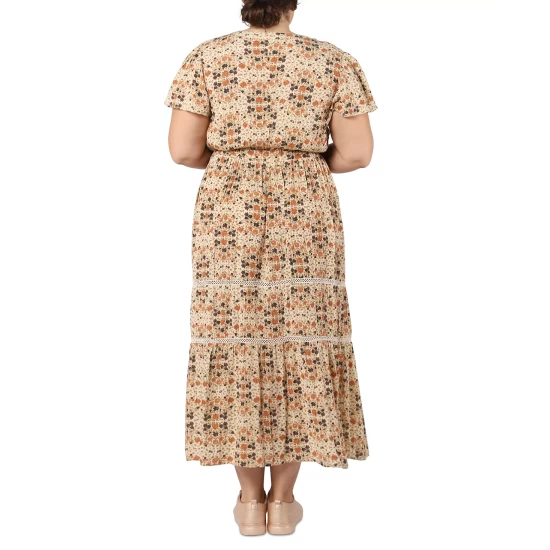 Black Tape’s plus size maxi dress adds boho chic to your closet with crochet insets and an appealing print.