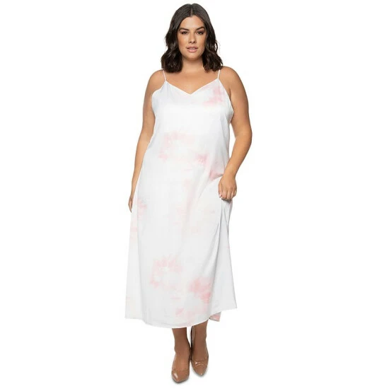 Black Tape’s plus size slip dress features tie-dyed satin for a new take on a vintage-inspired look.