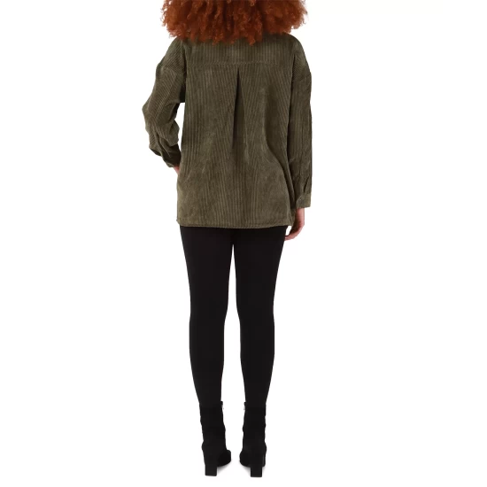 Classic corduroy gives a soft hand feel to Black Tape’s snap-front shacket, a versatile piece that can be worn as a shirt or a jacket.