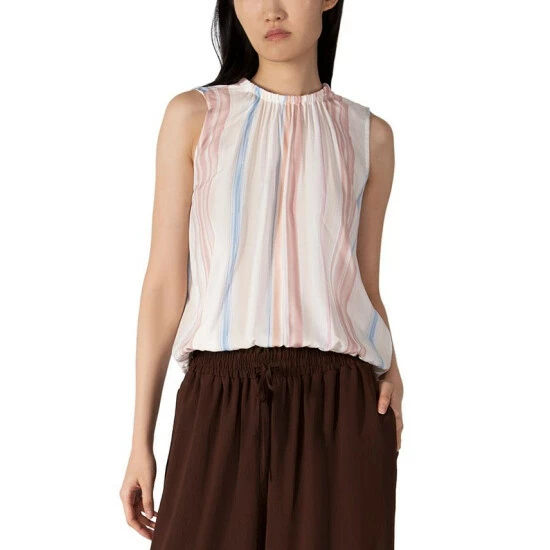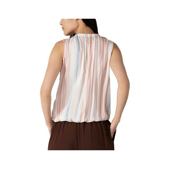 Sweet stripes and elasticized details at the neck and waist team up to make magic in this top from Black Tape.