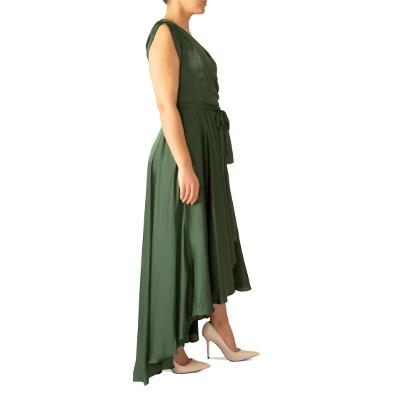 - Tie waist; high-low hem