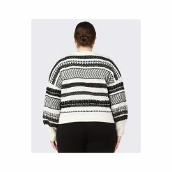 Best Pirce โ๏ธ Black Tape Trendy Plus Size Herringbone-Striped Sweater Mountain Aztec ๐